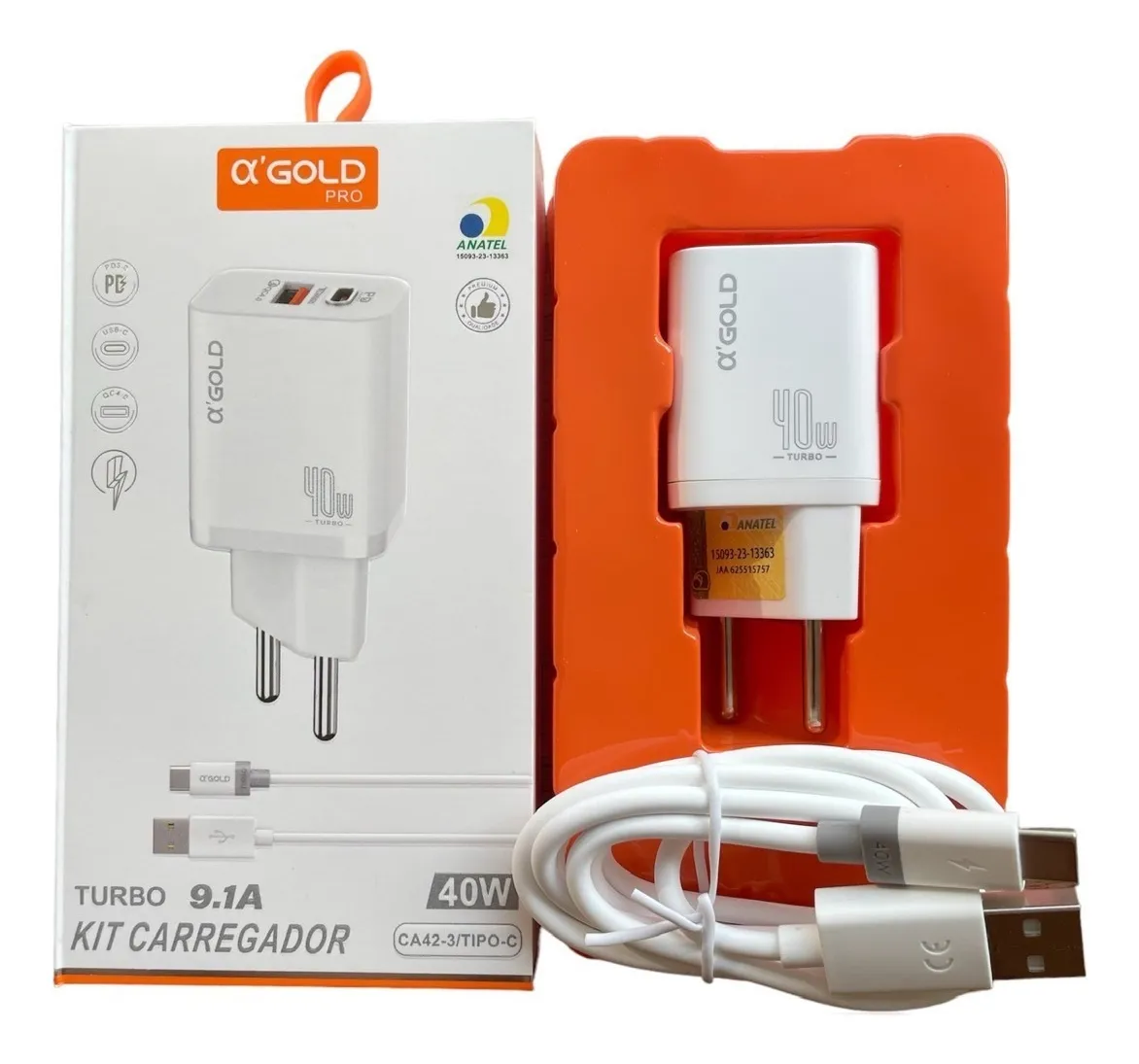 CARREGADOR TIPO C E FONTE 9.1A A'GOLD CA40-3