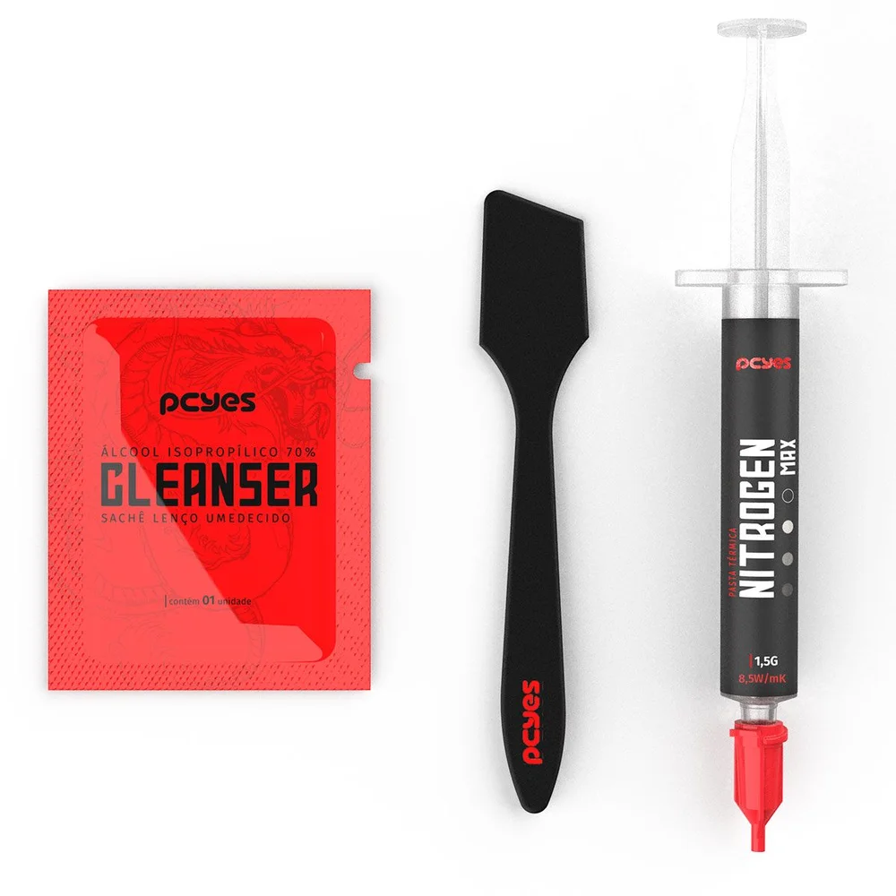 A Pasta Térmica PCYES Nitrogen Max é a solução premium para quem busca o máximo em desempenho térmico para seu PC. Com uma fórmula de alta condutividade térmica de 12,5W/mK e composição não condutiva, ela garante a transferência eficiente de calor entre o processador (CPU) e o cooler, mantendo temperaturas baixas mesmo em situações de alta carga, como em jogos, overclock ou renderização.